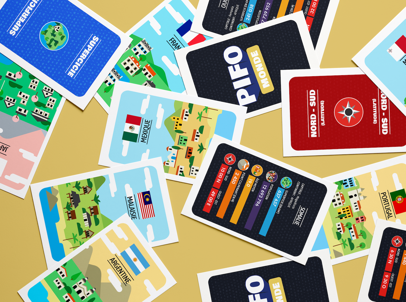En famille ou entre amis, jouez avec les pays du monde pour de grands moments de fou rire. PIFO FRANCE, c'est le jeu parfait pour des soirées conviviales : testez vos connaissances sur l'Hexagone : départements, régions, spécialités, monuments, records.