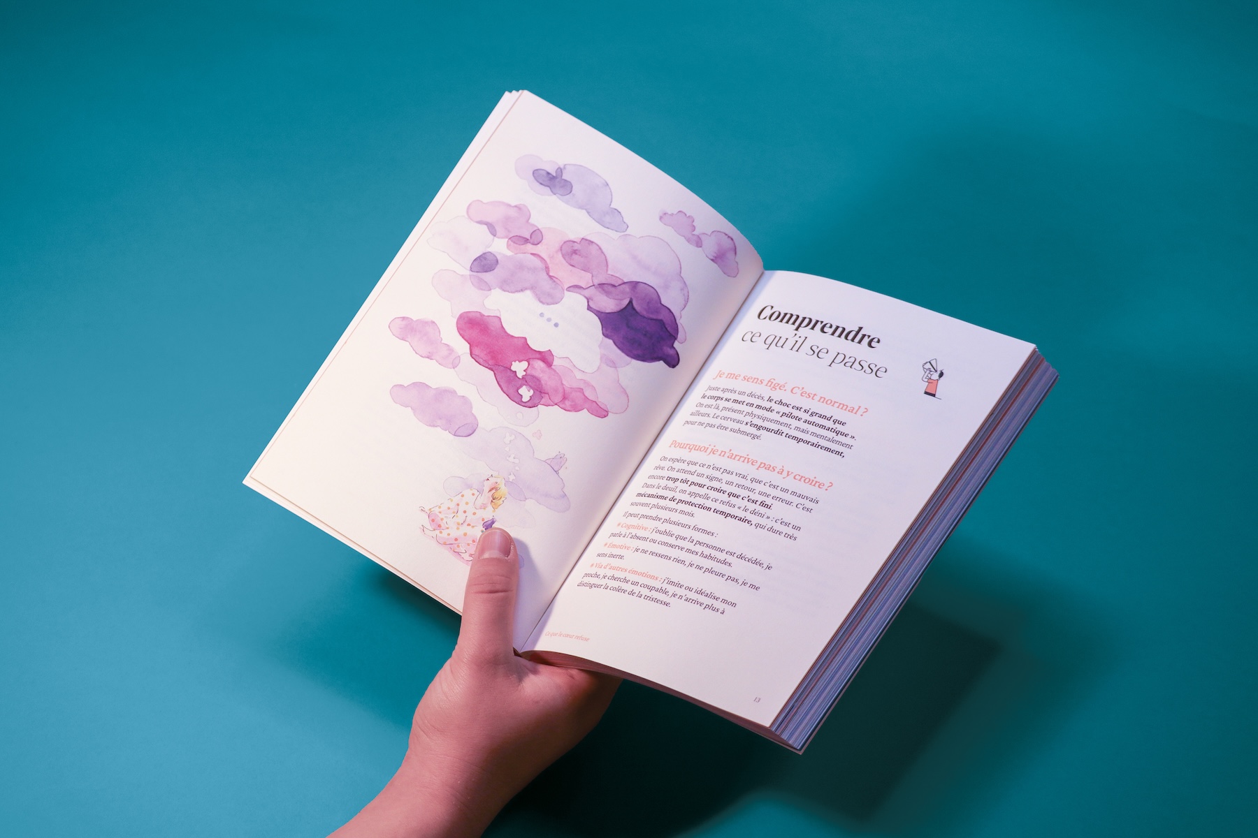 - D'un côté : comprendre et vivre son deuil (cycles émotionnels, étapes du deuil, ressources et associations existantes)